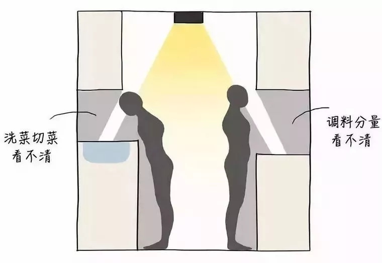 當(dāng)你切菜煮飯的時(shí)候就會發(fā)現(xiàn),你剛好擋住了吸頂燈下的光,面對的地方都是一片陰影。是不是仿佛又看到了自己在廚房摸黑切菜的樣子?